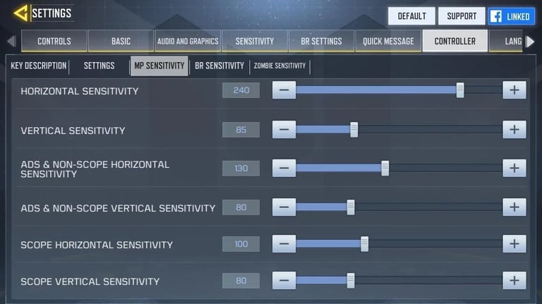 Call of duty Mobile, it offers a variety of sensitivity settings that allow players to maneuver through the very limited operating environment of a handheld game