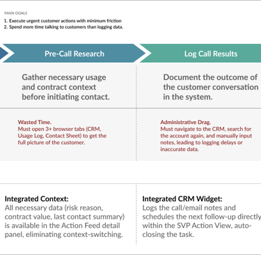 Inefficient Workflow: Sales and CS teams wasted 2-3 hours per week manually synthesizing data from 4 separate tools to triage their account lists.