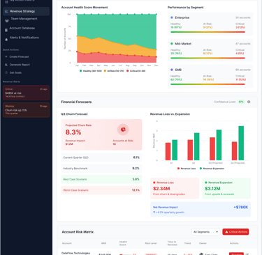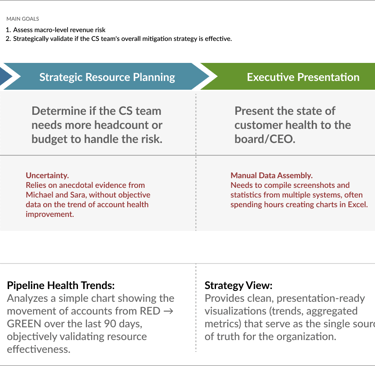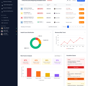 High Churn Risk: CS Managers only identified at-risk accounts after key usage metrics had already plummeted, leading to an average of 18% unplanned quarterly churn.
