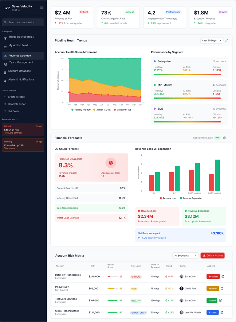 Title: Redefining the Sales Velocity Platform (SVP): Designing a predictive dashboard and workflow tool to drive proactive retention and minimize customer churn for B2B SaaS organizations.