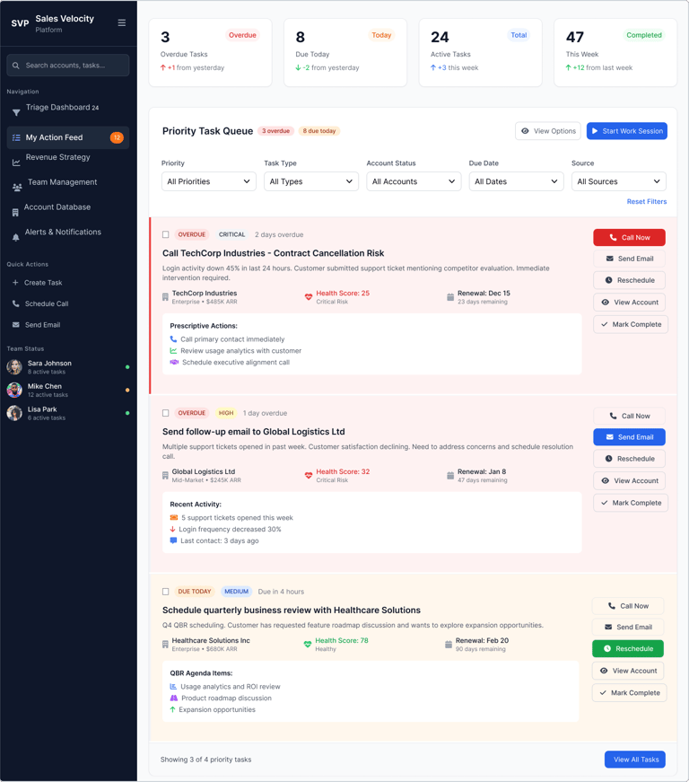 Transform the platform from a historical reporting tool into a centralized, actionable control panel, measurably reducing time-to-action on critical accounts.