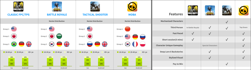 We gained a clear understanding of the preferences of players in this genre, such as preferred game modes, pacing of the game, and the complexity of controls. Analysis of existing games helped us identify demographic trends, such as age groups, gender distribution, and geographical popularity, guiding us in tailoring our game to the most receptive audience.