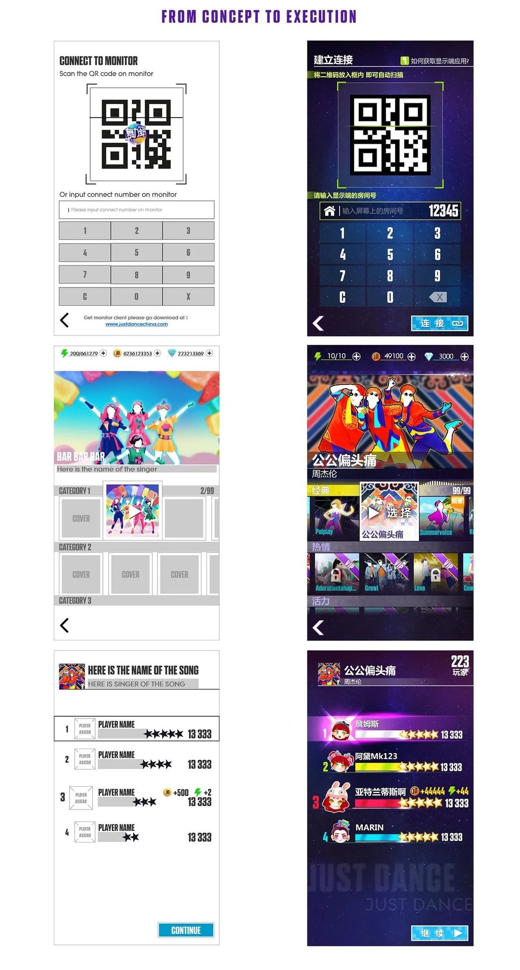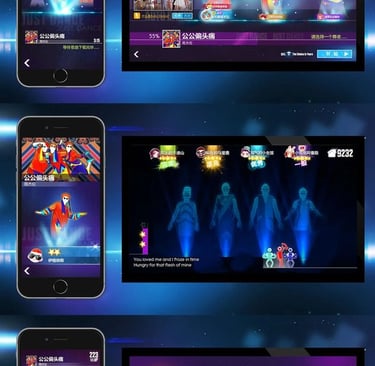 This dance game appeals to a broad range of players without a specific age focus. While Just Dance has established a substantial fan base in European and American markets, it remains relatively unknown to Chinese players. The concept of using Kinect from Xbox or the controller from Wii for motion tracking is also a novel idea. During the initial market research, players struggled to understand the connection between mobile phones and dancing. Thus, providing guidance for beginners becomes a crucial initial challenge. The message, “Your smartphone turns into a controller and tracks your moves!” is a key introductory concept for players.