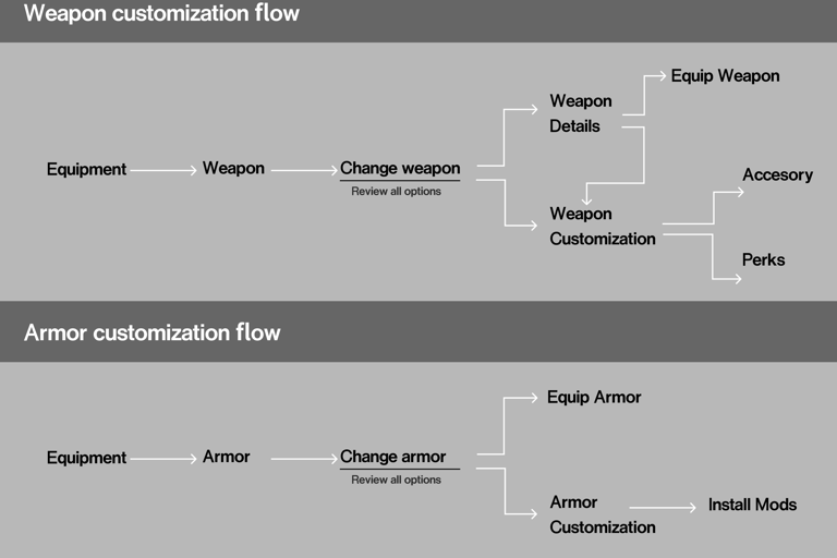 Streamlining weapon and armor customization flows.