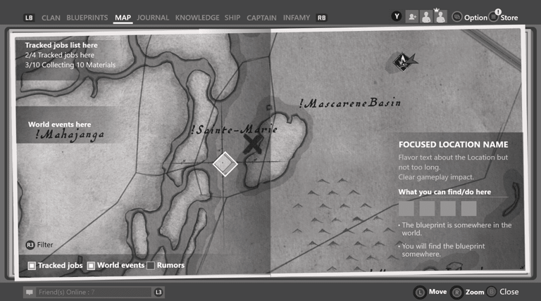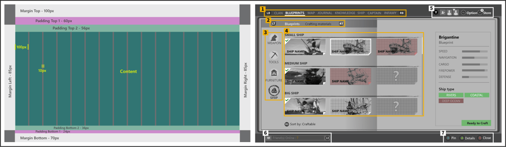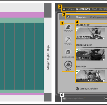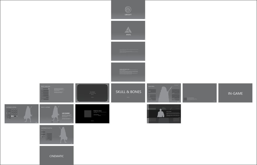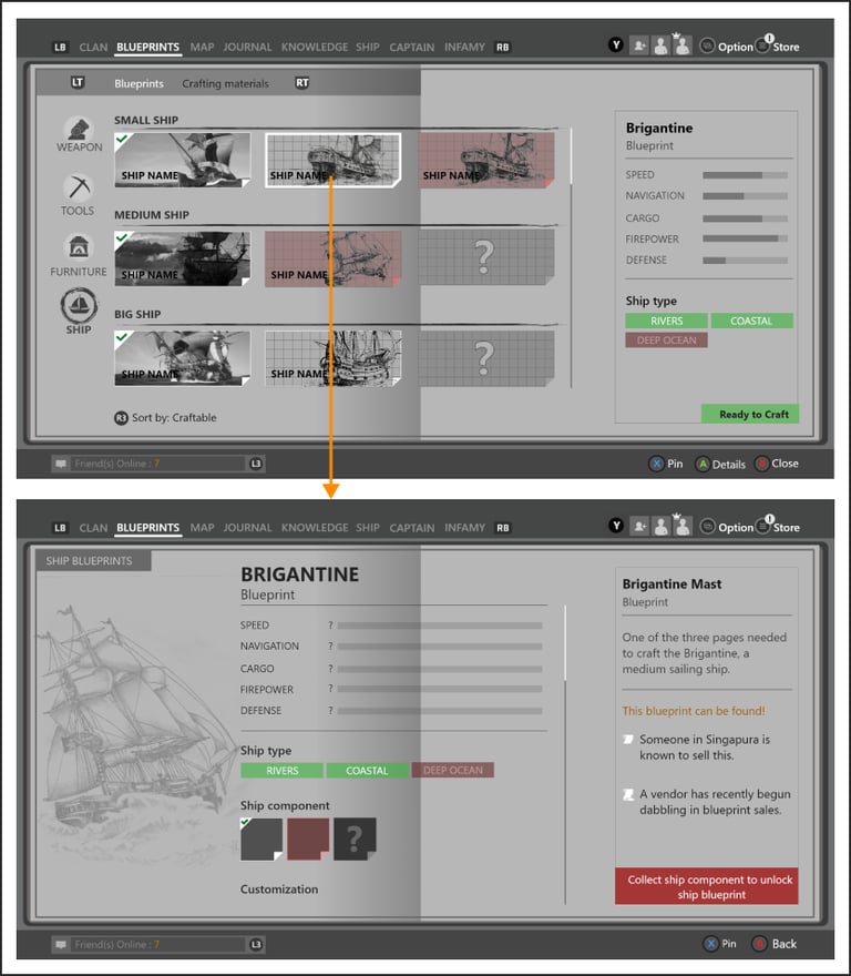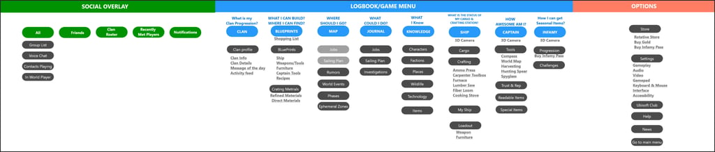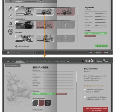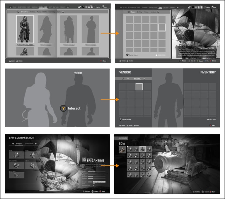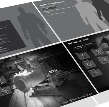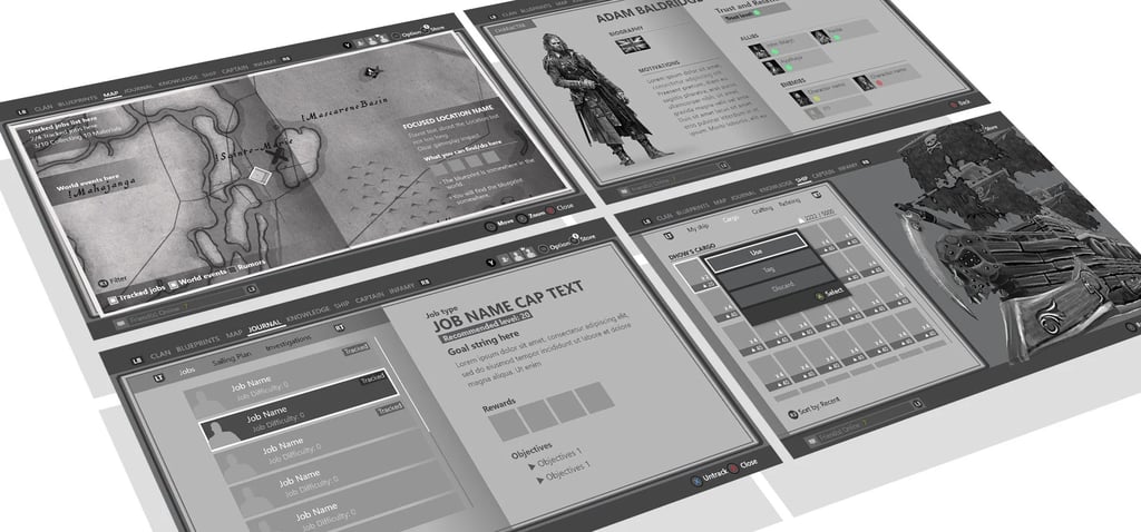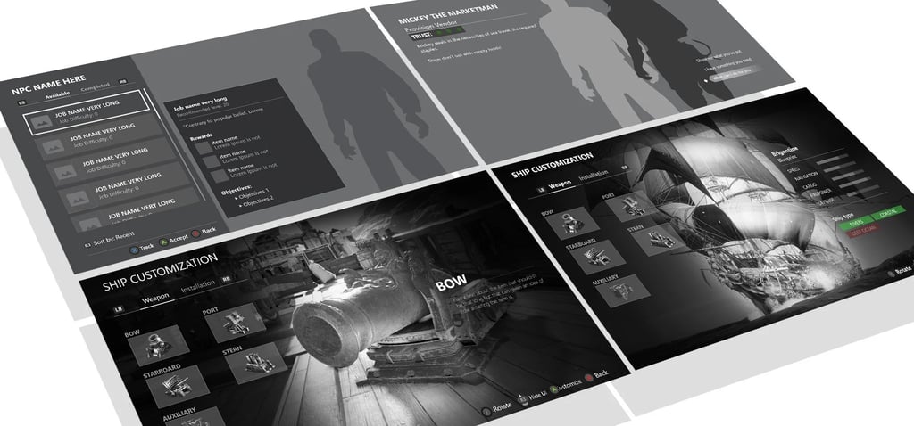 Menus across Skull & Bones shared a consistent navigation and interaction system, crucial for cross-platform usability.
