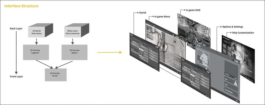 After 7 years of development, Skull & Bones underwent a major gameplay pivot in 2018. This shift required a complete rethinking of the game’s meta-game menu experience, ensuring clarity, consistency, and scalability across multiple studios.