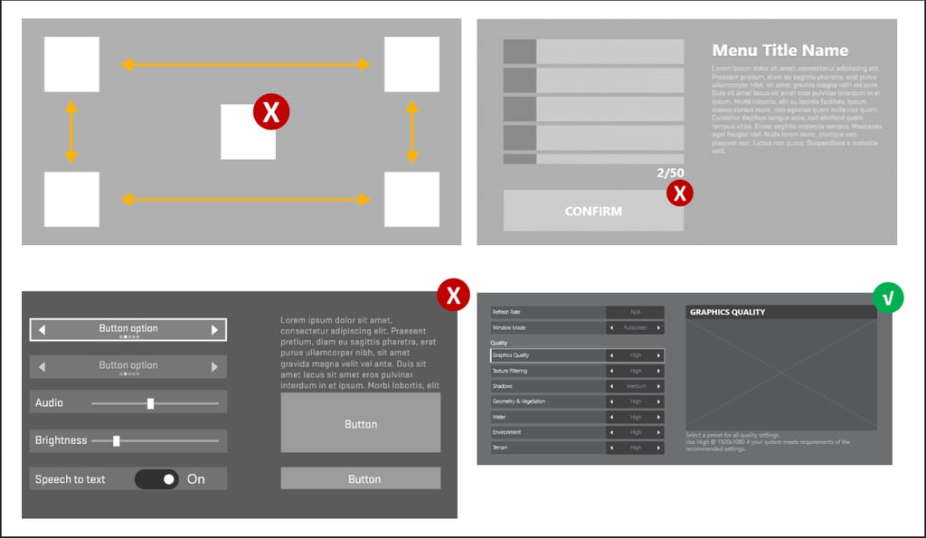 Prevent UI from obscuring 3D objects (use transparency where needed).