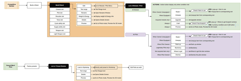Proto-Personas & Journeys: "Casual Mech Pilot" (seeks quick wins) vs. "Competitive Builder" (deep customization).