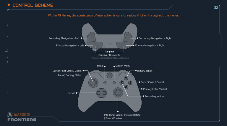 Interaction Guidelines: Documented focus nav for consoles; validated via playtests