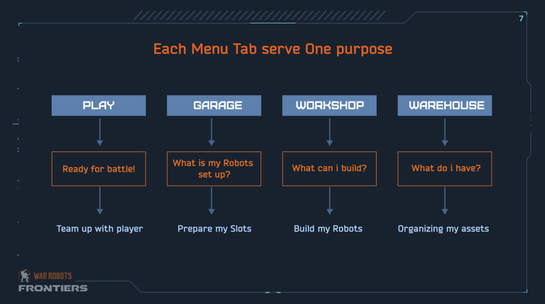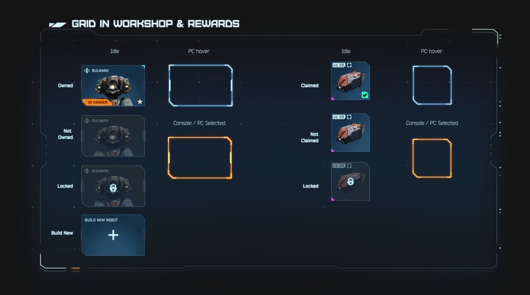 Nine months pre-launch, user research revealed critical risks in the five-year-old Meta UX (progression and customization system). High cognitive load from non-linear robot assembly flows caused frustration and early drop-off, while inconsistent visuals eroded brand cohesion across PC and console.